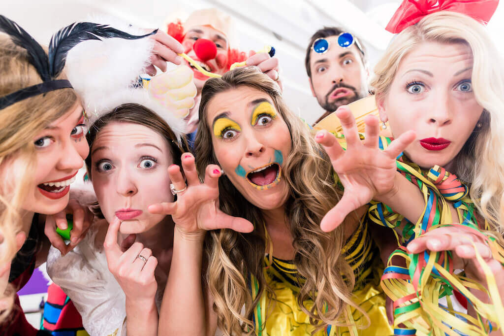Und was darf auf keiner Faschingsparty fehlen? Natürlich das passende Kostüm. Wie wäre es denn dieses Mal mit einem Käsekostüm? Das ist genauso schnell gemacht wie die tollen Käsehappen, denn man braucht eigentlich nur einen Pappkarton, in den man selbst mit dem Oberkörper hineinpasst. Von außen kommt gelbe Farbe oder gelbes Krepppapier dran und die Löcher im Käse kann man ausschneiden oder durch schwarze Flecken darstellen. Noch Löcher für Arme, Kopf und Hüfte und fertig ist das Käsekostüm. Passende Accessoires sind vielleicht Deko-Mäuse, die auf dem Käse sitzen oder ein Haarreifen mit Mausohren – so ist man selbst die Maus im Käse …