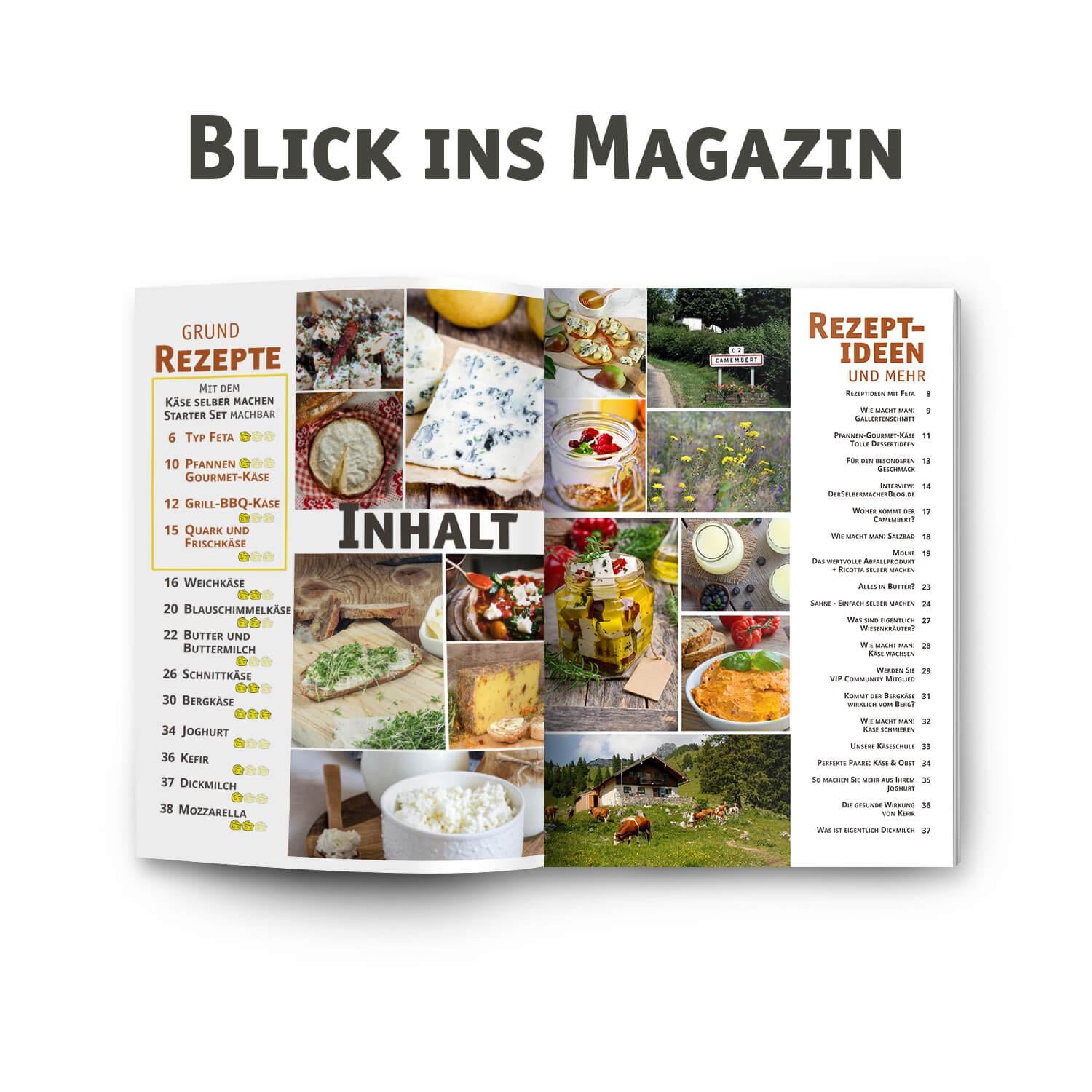 Damit Sie in die Welt des Käses so richtig eintauchen können, legen wir Ihnen unser umfangreiches Rezeptmagazin bei, indem wir Ihnen zusätzliche Tipps & Tricks verraten und spannende Themen rund um den Käse ansprechen. 40 Seiten im A4 Format voll gepackt mit Schritt für Schritt Anleitungen, bildlichen Erklärungen, tollen Rezeptideen und Anregungen, Interviews, Tipps und Tricks, sowie Wissenswertes rund um das Thema Käse und Milchprodukte.
