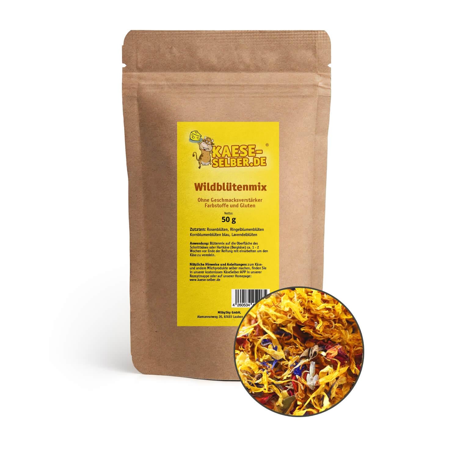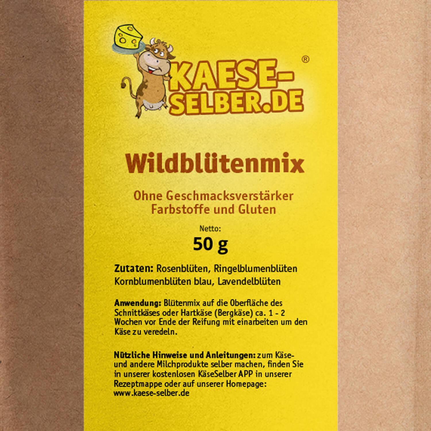 Der Wildblütenmix ist (in Kombination mit der BL-Kultur) ideal dazu geeignet, um Ihren selbst hergestellten Schnitt- oder Bergkäse an der Oberfläche mit Blüten zu veredeln. Wie die Oberflächenveredelung genau funktioniert ist in der Schmieranleitung beschrieben (zu finden beim Produkt BL-Kultur "als Variante wählbar").